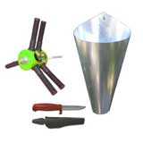 First of all, the kit contains four different tools. You are going to receive a Swedish knife that is for killing the birds. Then you will find a cone, in which you are going to have to do the plucking process. And finally, it includes a drill attachment plucker, which you are going to need for defeathering the fowls.